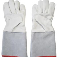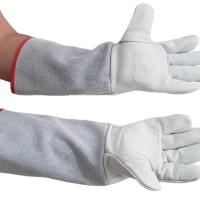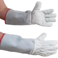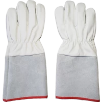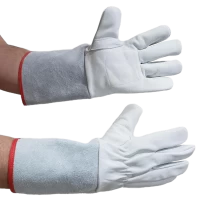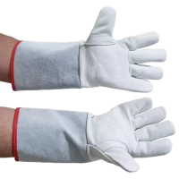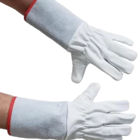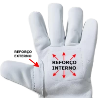 Modelo: Montpelier (Petroleira), com reforço palmar, elástico embutido no dorso e acabamento com viés vermelho e modelo com punho de 15 e 20 cm em raspa.