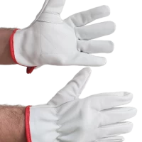 Modelo: Montpelier (Petroleira), com reforço palmar, elástico embutido no dorso e acabamento com viés vermelho.