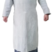 Descrição: Avental de segurança confeccionado em raspa e com emenda, com mangas, duas palas e elástico nas costas e tiras em raspa na cintura para ajustes. Possui comprimento de 1,20m e largura de 0,60m.