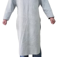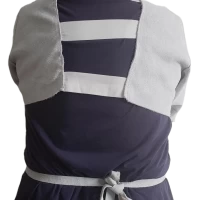 Descrição: Avental de segurança confeccionado em raspa e sem emenda, com mangas, duas palas e elástico nas costas e tiras em raspa na cintura para ajustes. Possui comprimento de 1,20m e largura de 0,60m.